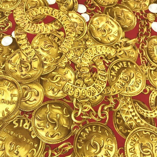 CHANEL Vintage CC Logo Jewelry Pattern Red & Gold Scarf