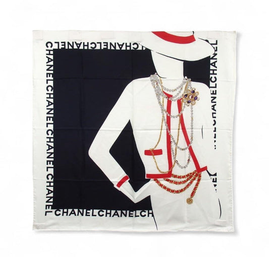 CHANEL Vintage Silk CoCo Mademoiselle Silhouette Scarf