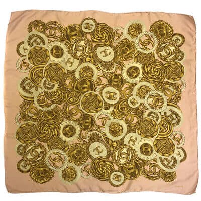 CHANEL CC Logo Pink 100% Silk Jewelry Print Scarf