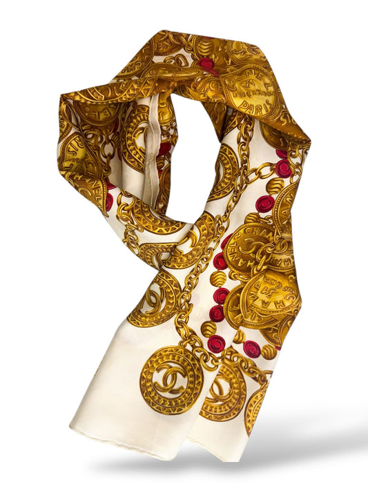 CHANEL CC Logo Jewelry Motif Silk Scarf