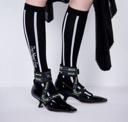CHRISTIAN DIOR D-FENCE Black Lace Up Knee High Boots IT37.5