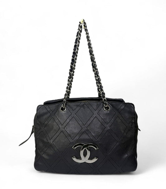 CHANEL Black Vintage CC Logo Caviar Leather Quilted Medallion Tote Bag