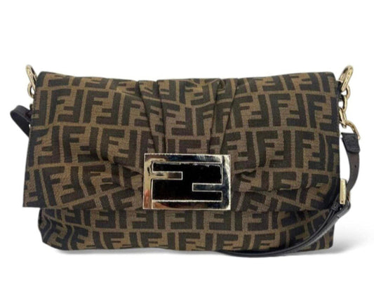 Fendi Tobacco FF Zucca Canvas & Leather Mia Flap Shoulder Bag