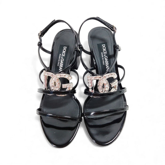 DOLCE & GABBANA Crystal DG Logo Patent Leather Sandals IT36