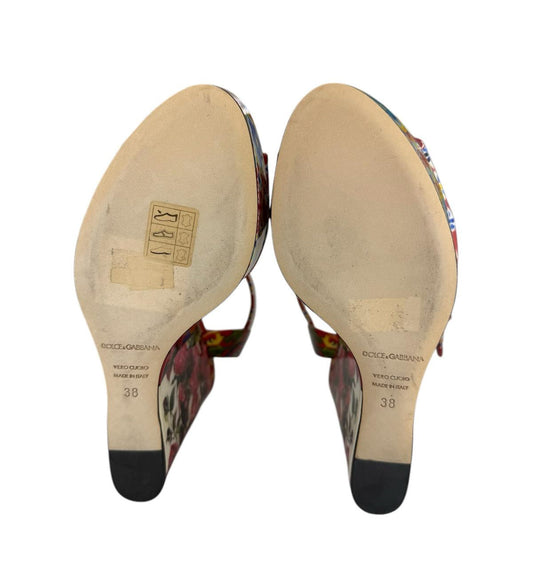 DOLCE & GABBANA Mambo Rose Print Patent Wedge Sandals IT38