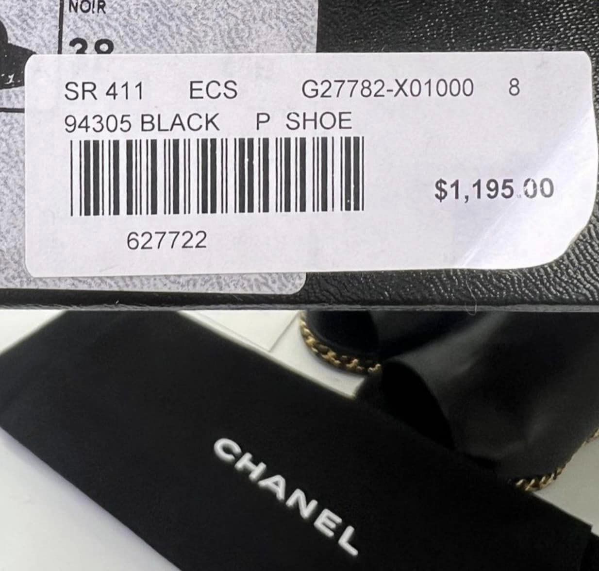 CHANEL Black Open Toe Lambskin Leather Gold Chain Wedge Ankle Boots Size EU38