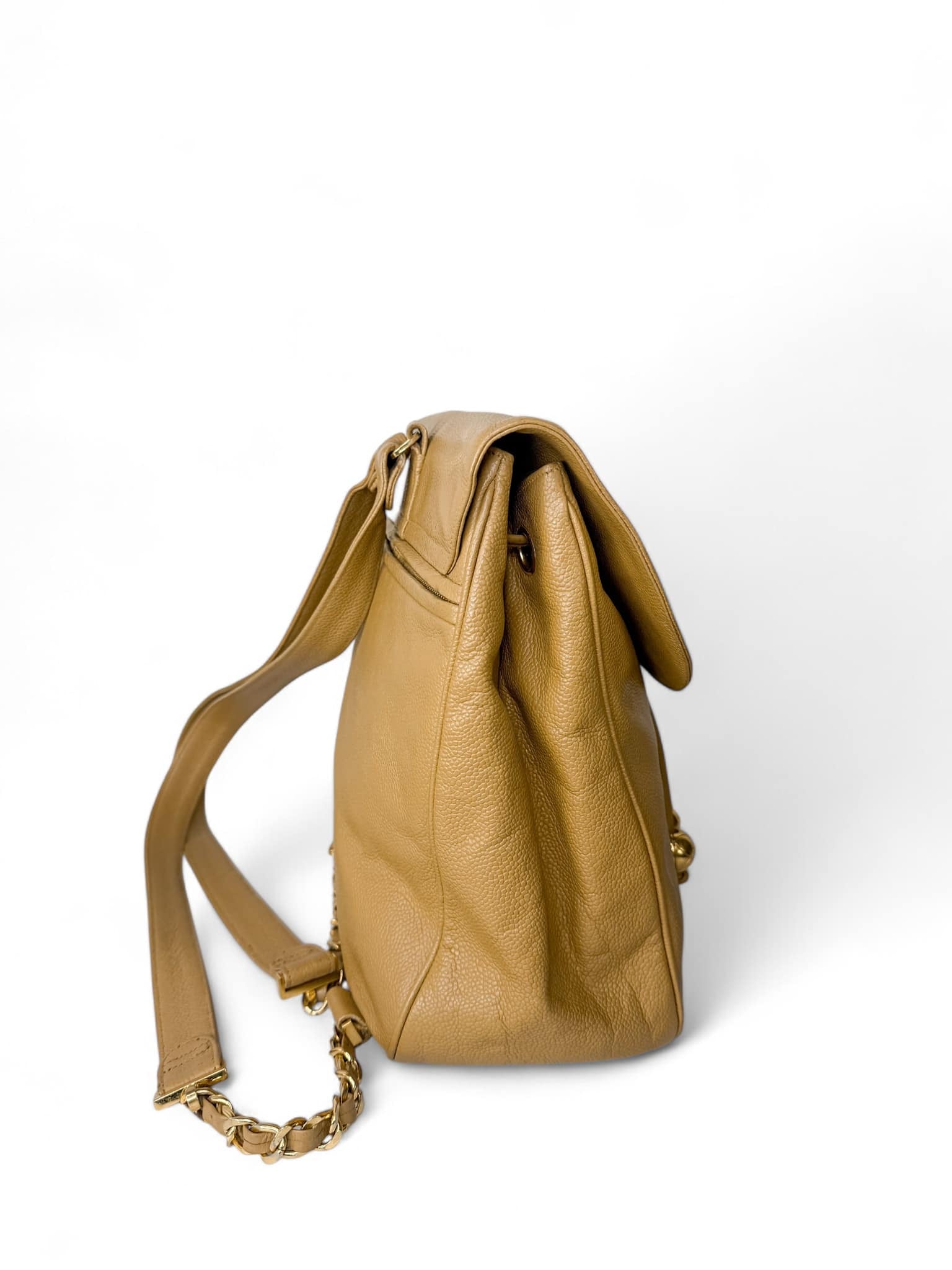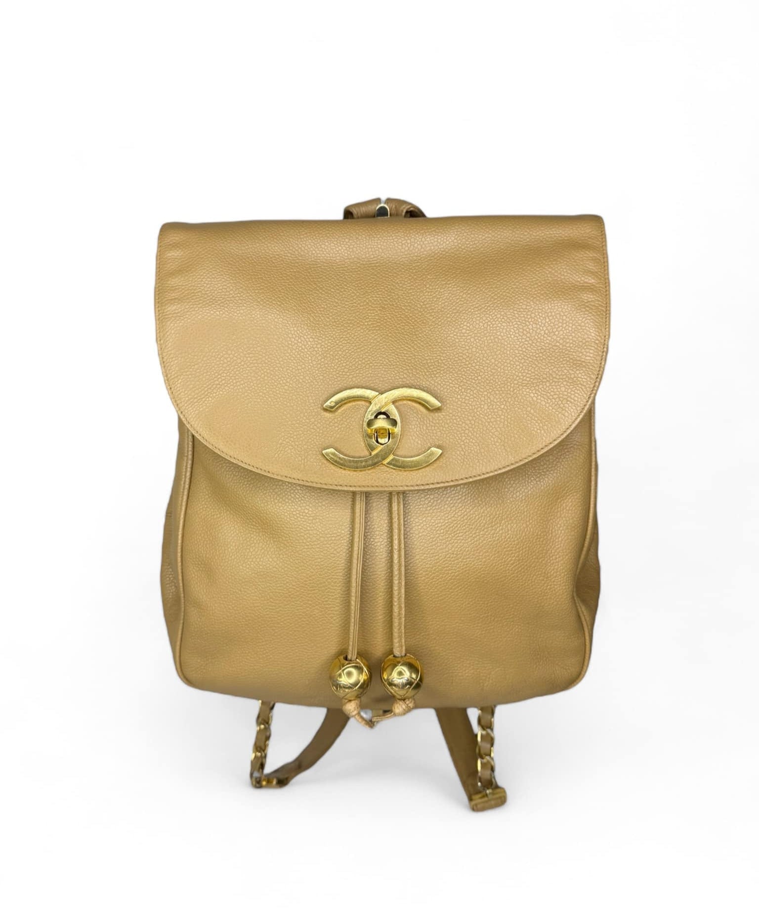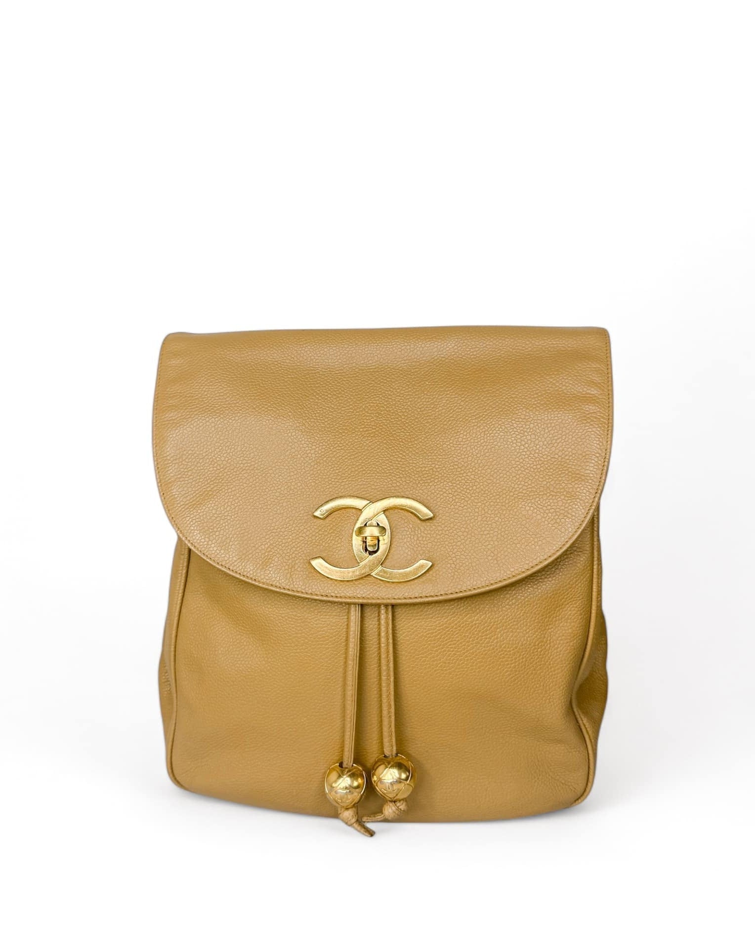 CHANEL Vintage Tan CC Logo Caviar Leather Backpack