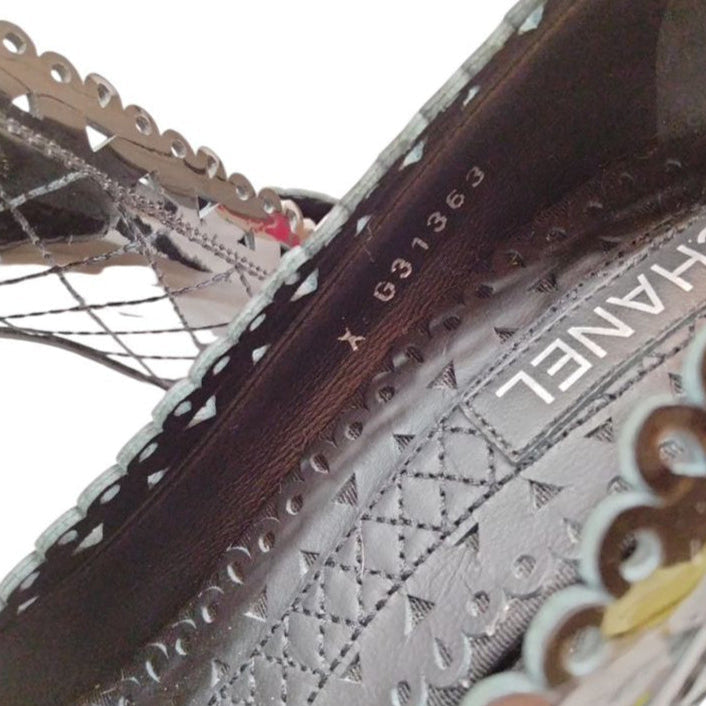 CHANEL Black Patent Leather CC Logo Heels IT36