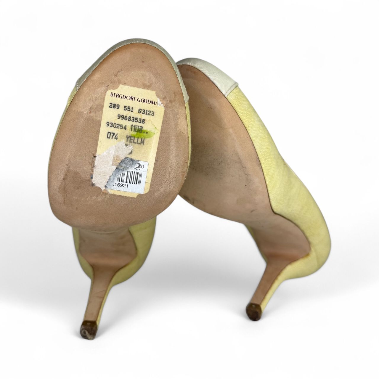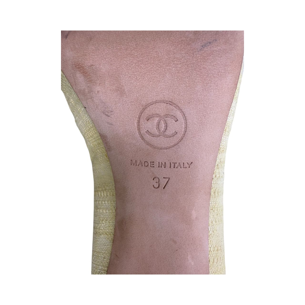 CHANEL Cream and Yellow Linen Cap Toe Pumps IT37