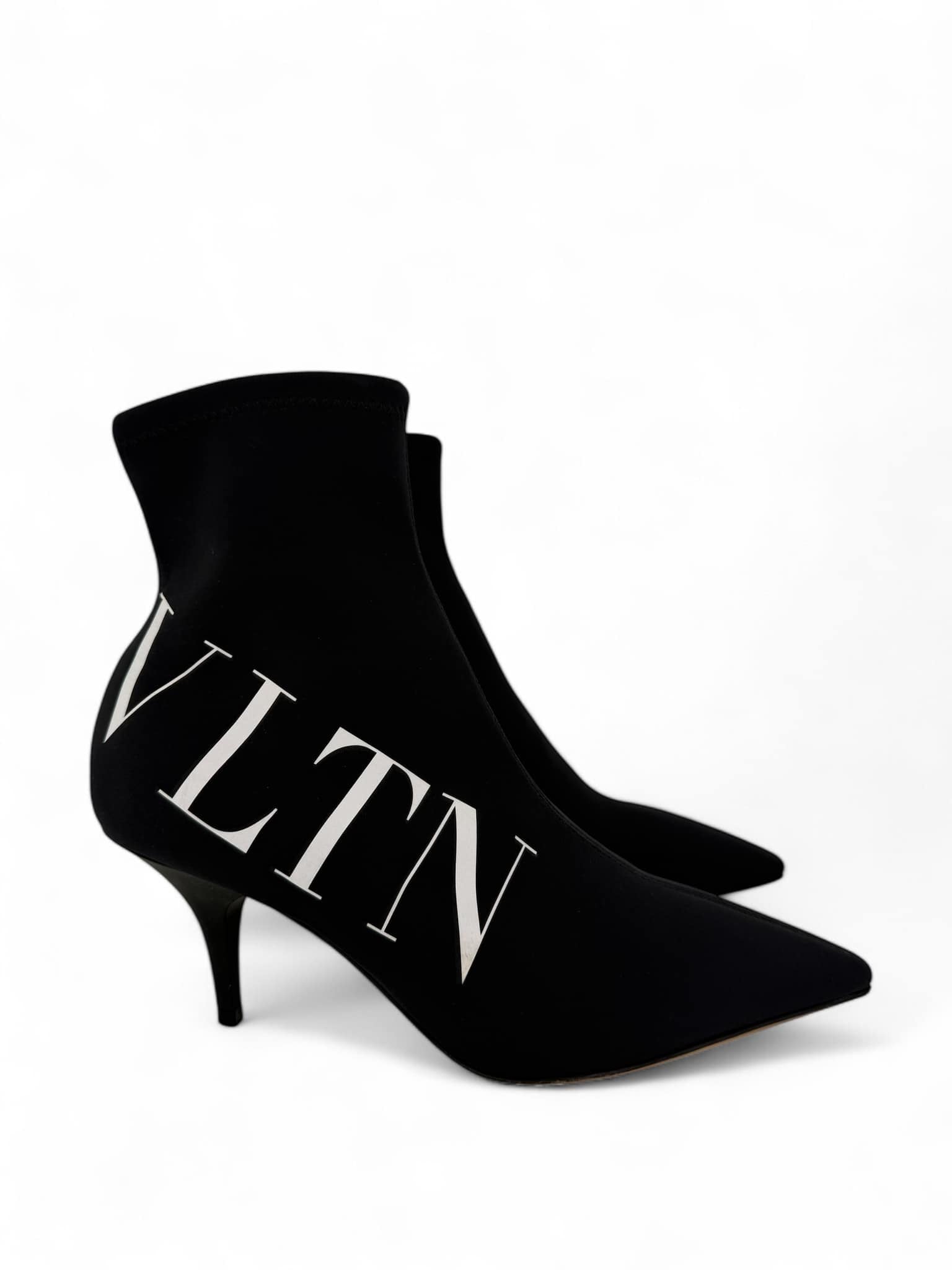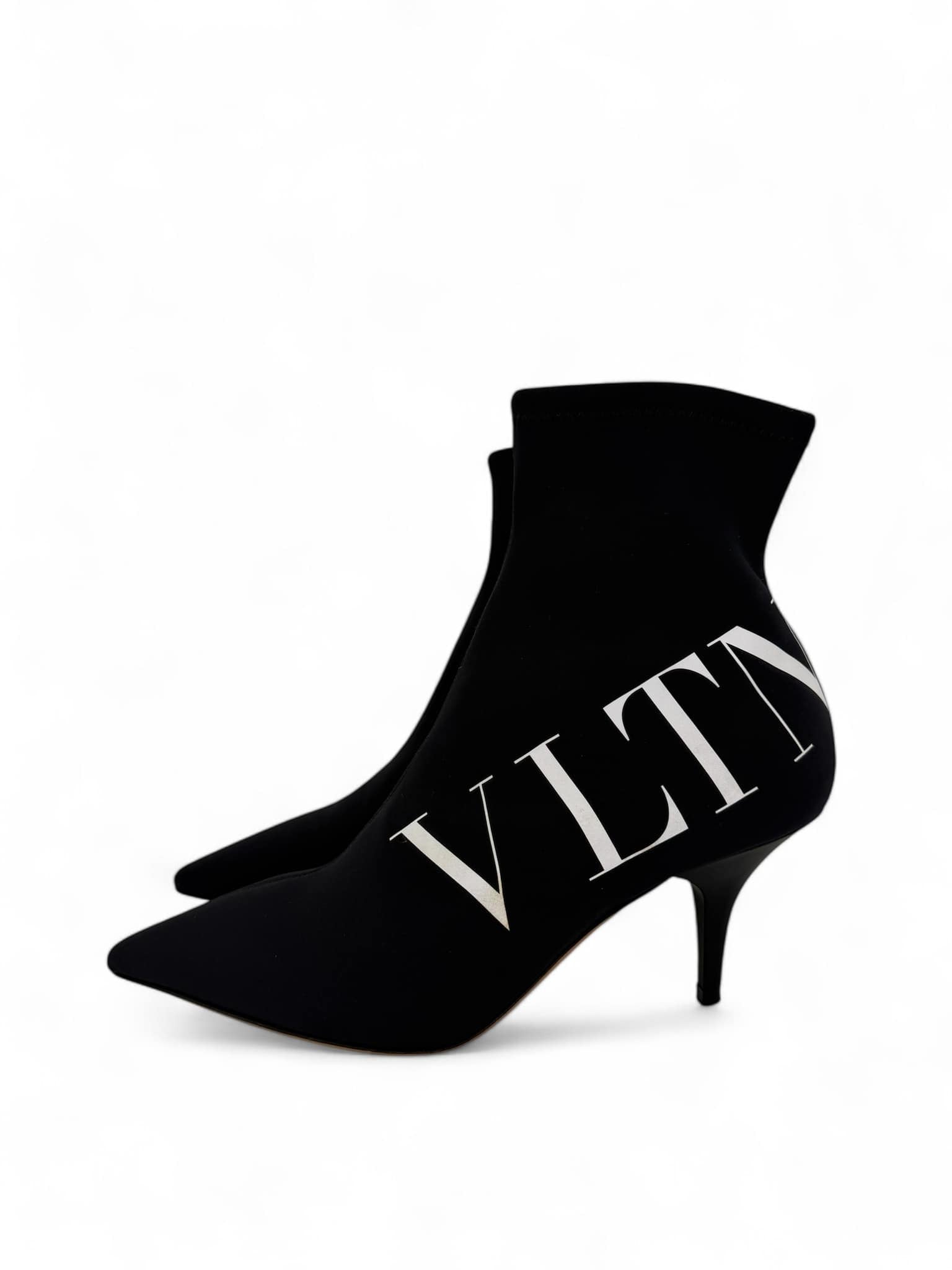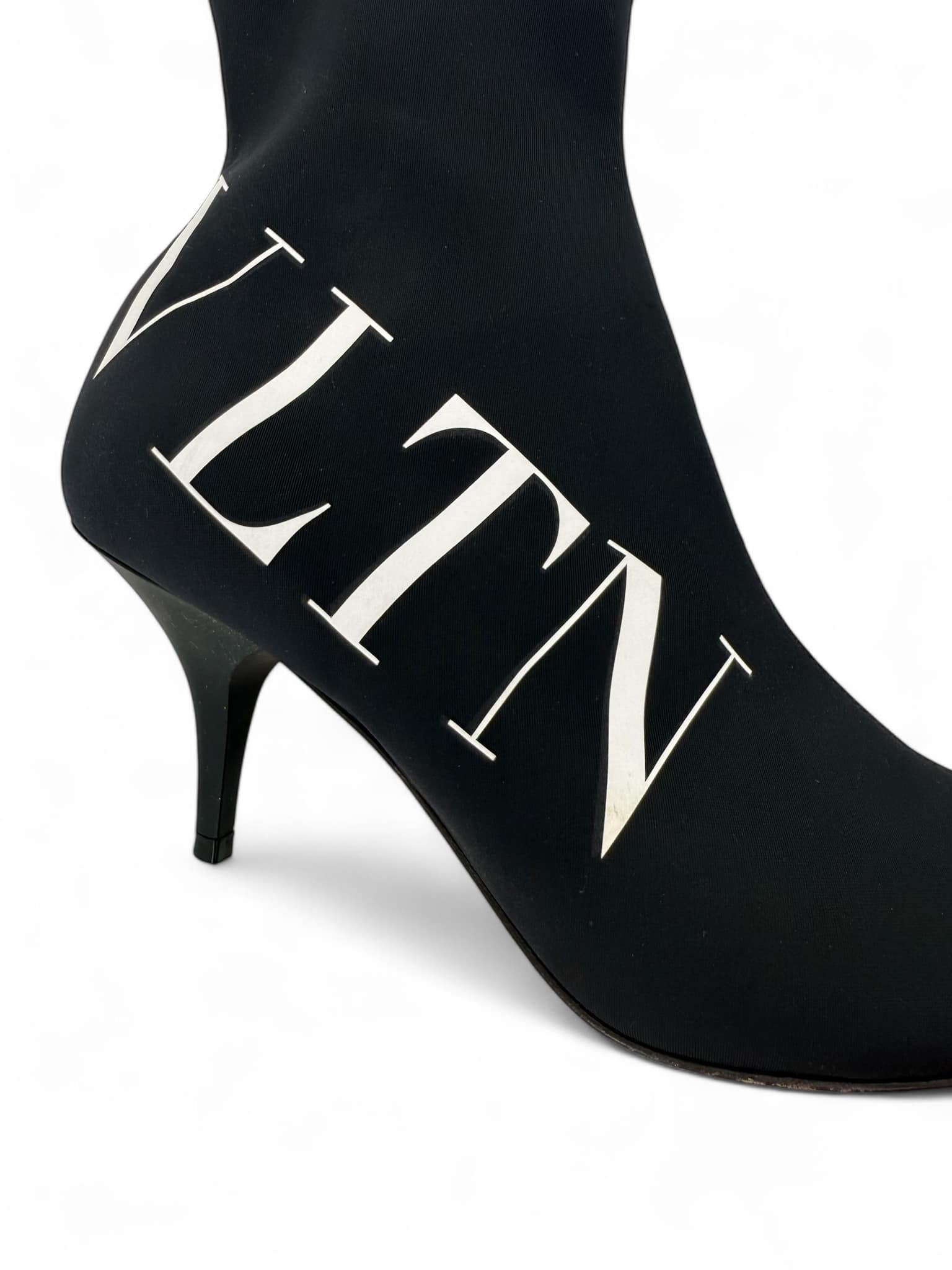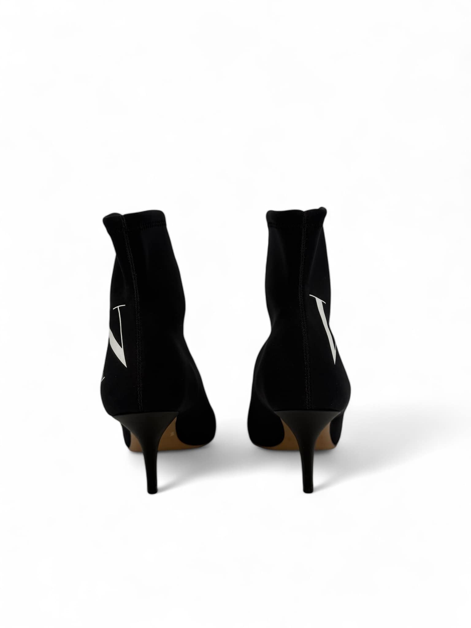 VALENTINO GARAVANI Black Stiletto Heel VLTN Logo Sock Ankle Boot EU36.5